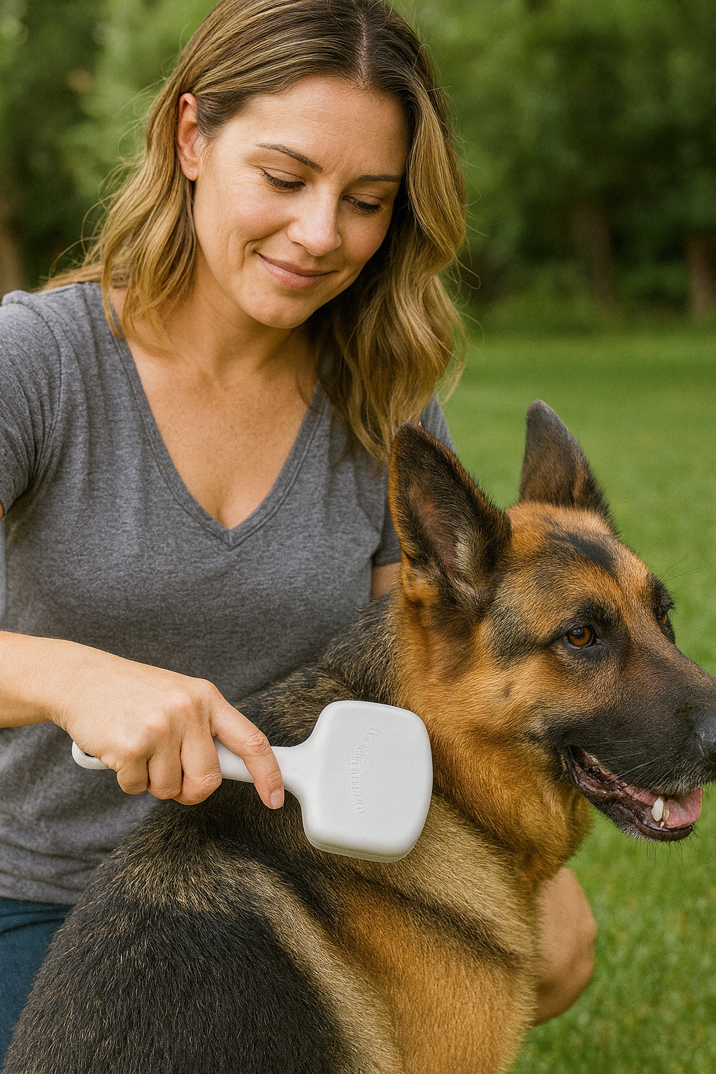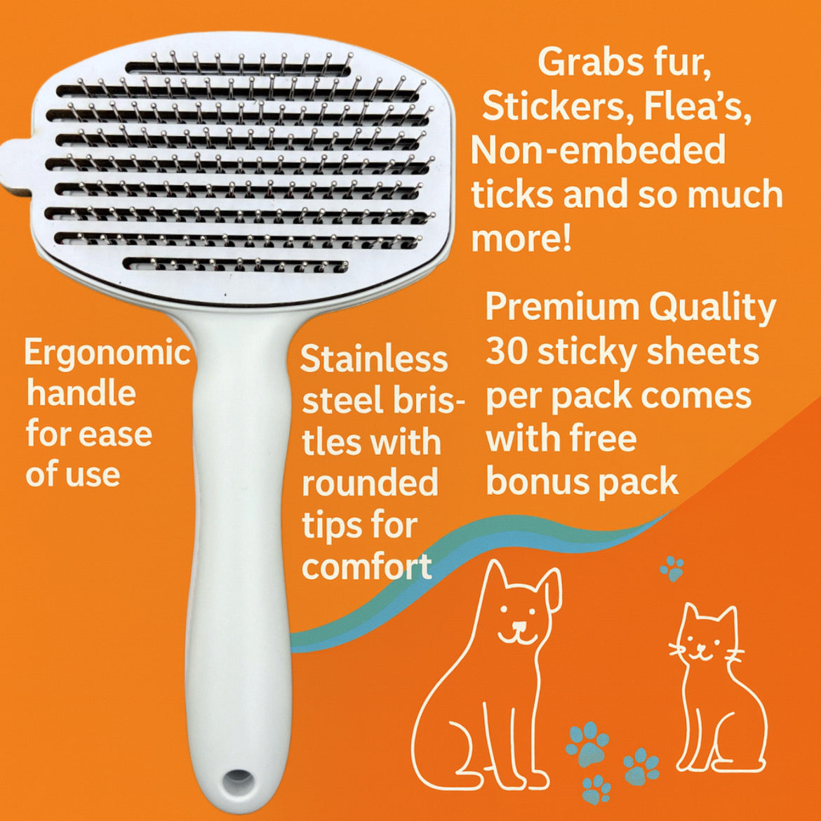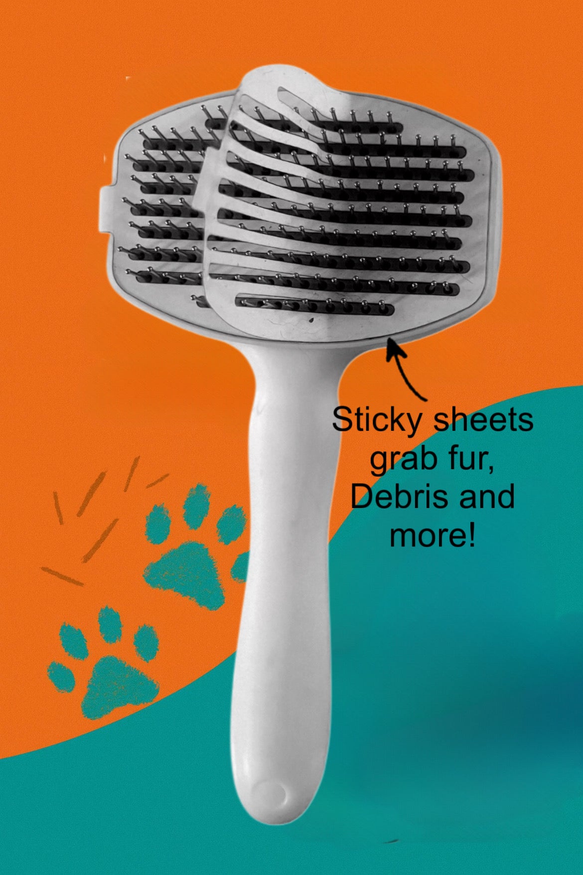 A pet hair brush with built in sticky lint sheets that grabs fur, stickers and, any debris in it's path. Simply brush, peel and repeat!